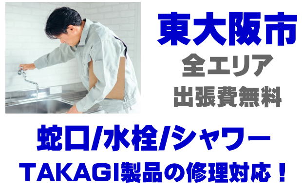 東大阪市で水栓メーカーTAKAGIの修理業者をお探しなら当社までお気軽にお問い合わせください。蛇口の水漏れ、シャワーの故障などタカギ製に関するトラブルなら何でもご相談ください。