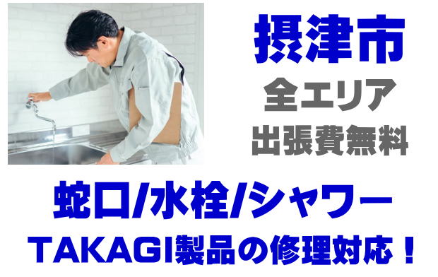 摂津市で水栓メーカーTAKAGIの修理業者をお探しなら当社までお気軽にお問い合わせください。蛇口の水漏れ、シャワーの故障などタカギ製に関するトラブルなら何でもご相談ください。