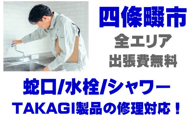 四條畷市で水栓メーカーTAKAGIの修理業者をお探しなら当社までお気軽にお問い合わせください。蛇口の水漏れ、シャワーの故障などタカギ製に関するトラブルなら何でもご相談ください。