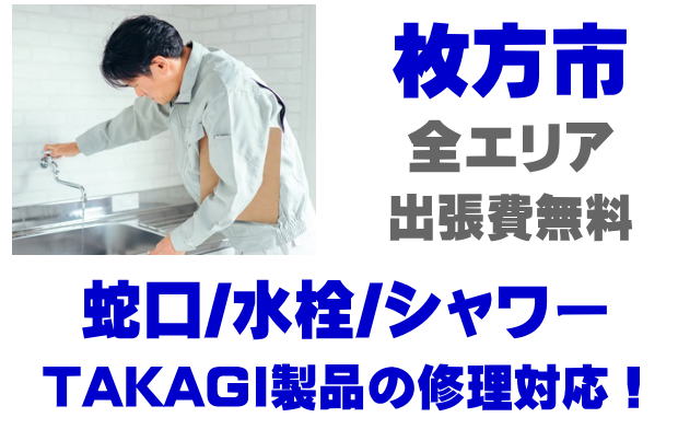 枚方市で水栓メーカーTAKAGIの修理業者をお探しなら当社までお気軽にお問い合わせください。蛇口の水漏れ、シャワーの故障などタカギ製に関するトラブルなら何でもご相談ください。