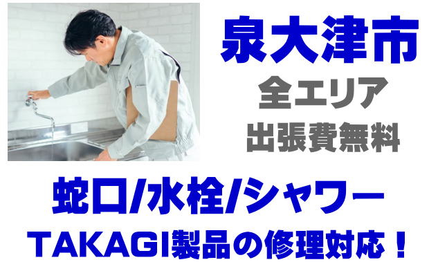 泉大津市で水栓メーカーTAKAGIの修理業者をお探しなら当社までお気軽にお問い合わせください。蛇口の水漏れ、シャワーの故障などタカギ製に関するトラブルなら何でもご相談ください。