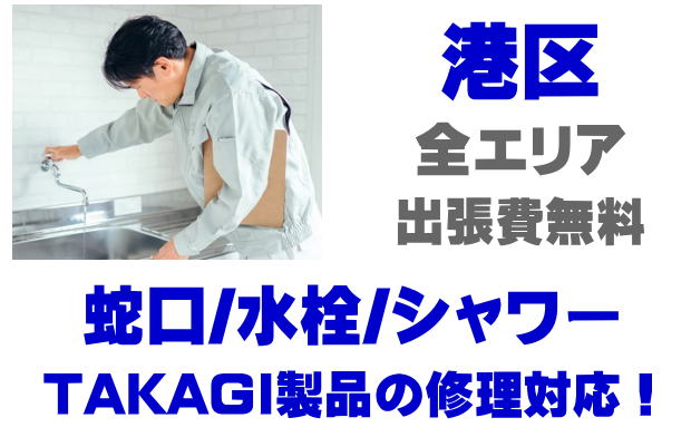 港区で水栓メーカーTAKAGIの修理業者をお探しなら当社までお気軽にお問い合わせください。蛇口の水漏れ、シャワーの故障などタカギ製に関するトラブルなら何でもご相談ください。