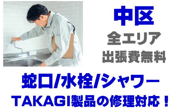 中区で水栓メーカーTAKAGIの修理業者をお探しなら当社までお気軽にお問い合わせください。蛇口の水漏れ、シャワーの故障などタカギ製に関するトラブルなら何でもご相談ください。